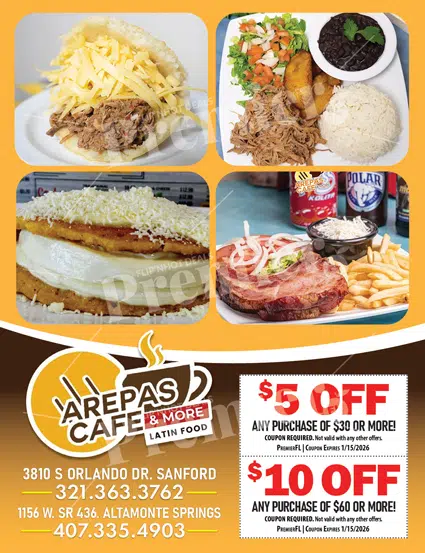 Arepas Cafรฉ & More is a warm, welcoming Latin food restaurant that brings the comfort and flavor of traditional Venezuelan cuisine to the local community. Known for its casual atmosphere and hearty, satisfying meals, this is the kind of place where families, coworkers, and friends gather to enjoy freshly prepared food made with care. From first-time visitors to loyal regulars, guests appreciate the generous portions and bold, home-style flavors.