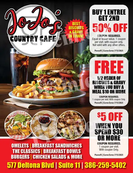JoJoโs Country Cafe is a neighborhood cafรฉ serving breakfast, brunch, burgers, and comfort food in a cozy, welcoming setting.