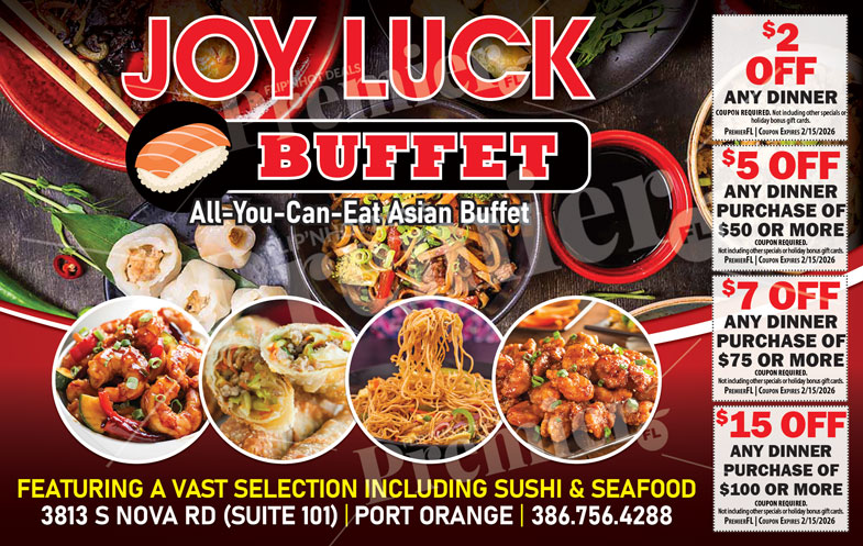 Conveniently located on South Nova Road in Port Orange, Joy Luck Buffet is an ideal choice for lunch or dinner with friends and family. Its generous selection, approachable pricing, and welcoming environment make it a dependable option for locals searching for an all-you-can-eat Asian buffet with sushi and seafood.
