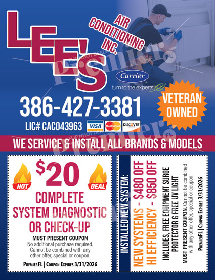 Save $480 OFF or $850 OFF high-efficiency systems. Includes free equipment surge protector. Must present coupon. Cannot be combined with any other offer. PremierFL | Expires 3/31/2026