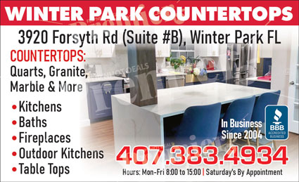 Winter Park Countertops LLC provides countertop solutions, offering a range of materials and designs for kitchen and bathroom surfaces.